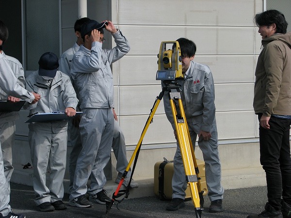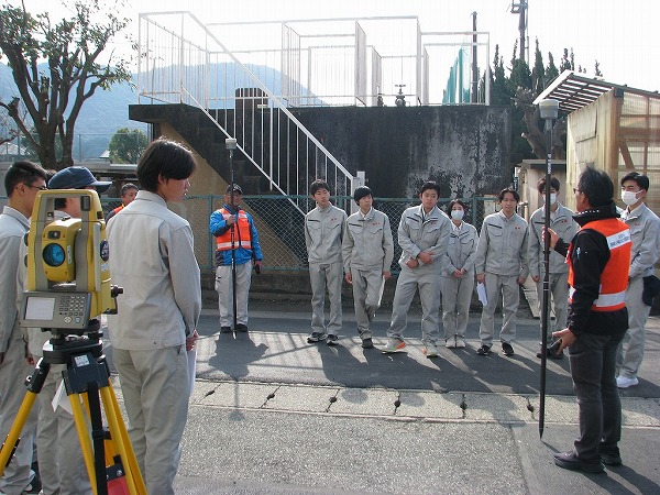 屋内授業では、『土地家屋調査士の1日』紹介動画の視聴、仕事内容の説明、土地家屋調査士試験の説明、土地家屋調査士による体験談発表。屋外授業では、トータルステーションとテープ測量による面積誤差の確認、GNSS(GPS)ネットワーク型RTK法による埋設物の探索、3Dレーザースキャナーを使用した測量の体験を行いました。